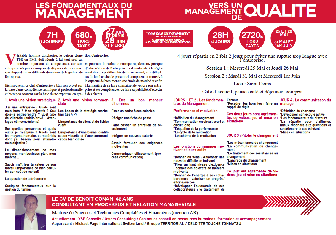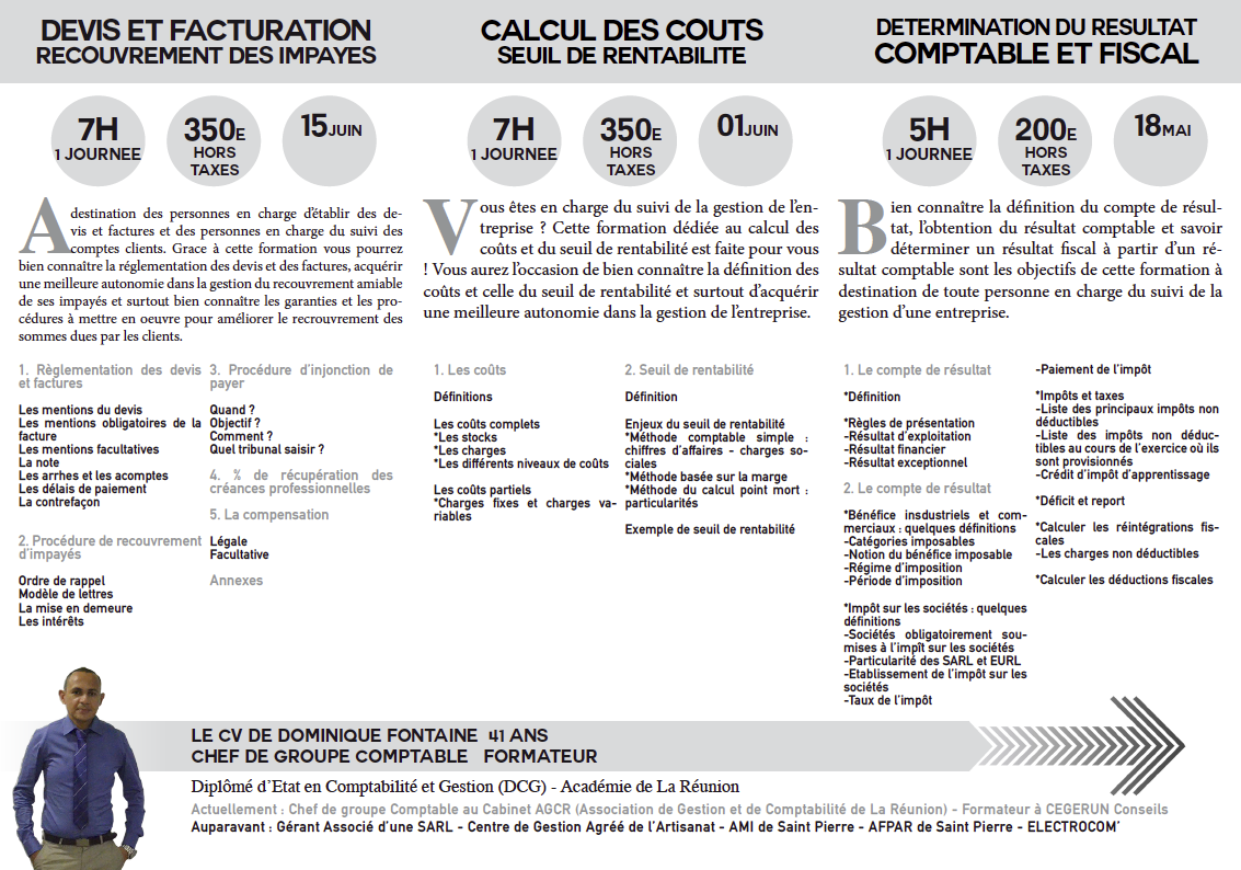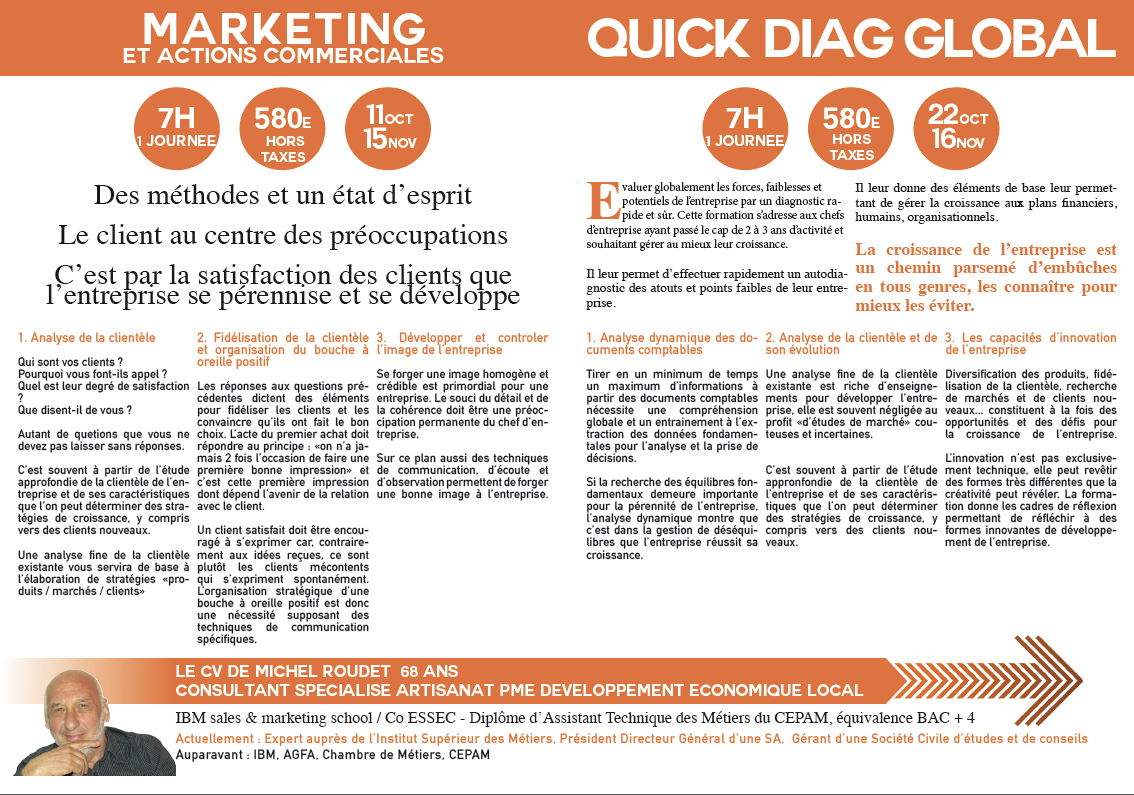 Ces formations peuvent être soit sur mesure car liées à des besoins spécifiques du chef d’entreprise ou de ses collaborateurs soit général.